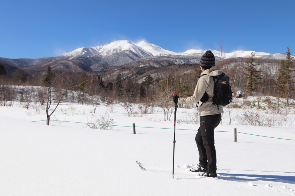 ノートレースの雪原を歩けるのも乗鞍ならでは😅